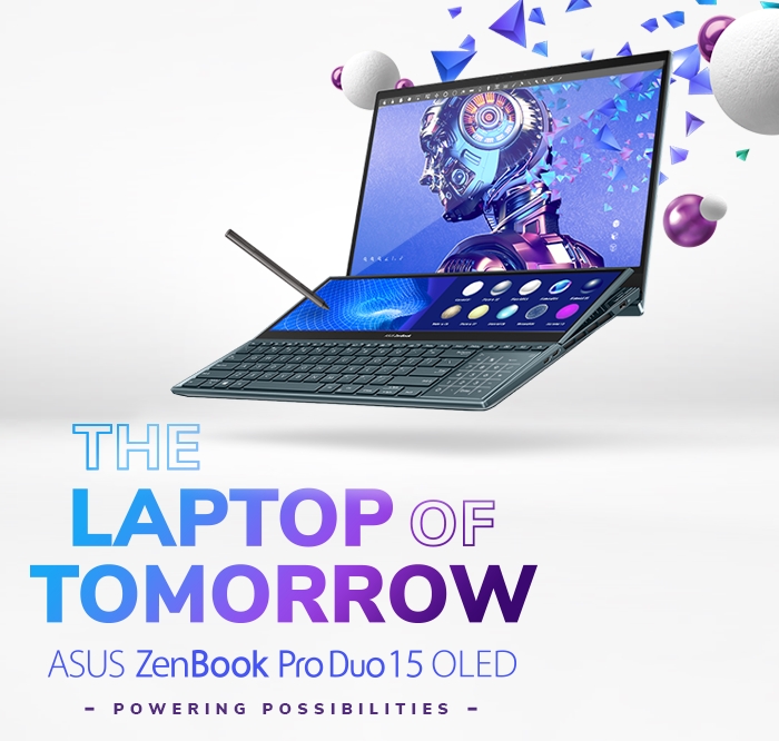 ZenBook Pro Duo 15 OLED laptop lets you get things done in style thanks to the bigger 15 inch screen, impressive dual-screen display and professional-grade graphics. You can work more efficiently with zero fuss and empower endless possibilities.